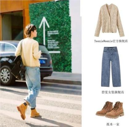 阔腿牛仔裤和马丁靴也是可以搭配的,上面搭配开衫,十分中性,又休闲简约,这样的穿搭真的很舒服的,随性又不随意。