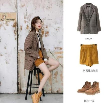 ⭐中长款西装外套+褐色短裤+褐色马丁靴