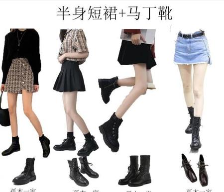 各种半身短裙也是可以搭配马丁靴的,一年四季都可以搭配的,夏天可以搭配衬衫,秋天可以搭配长袖,冬天可以搭配毛衣,下面搭配光腿神奇,是不是超级百搭。机智如我哈哈。
