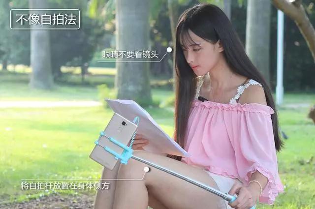 这招很适合单身狗们,利用自拍杆拍出一张男朋友视角的照片就很简单了,只要眼睛不看着镜头就可以,但是记住拿自拍杆的手不要张的太大,否则容易露馅。