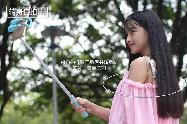 想要拍出回眸一笑的感觉,但是又没有朋友帮忙?可以利用自拍杆啊!