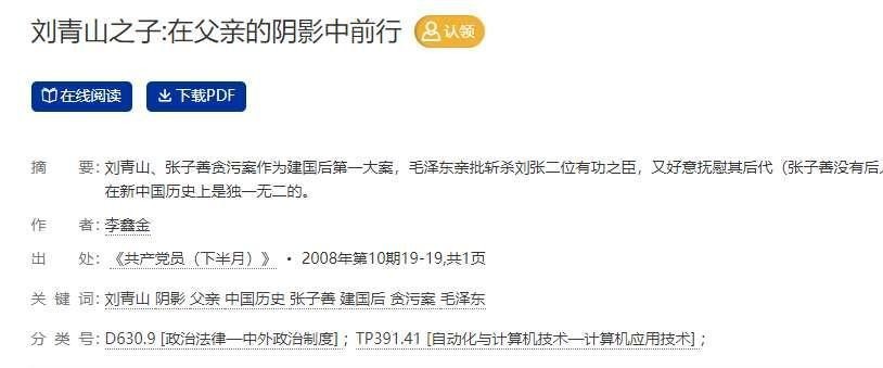 参考资料:[1]李鑫金.刘青山之子:在父亲的阴影中前行[J].共产党员(下半月),2008(10):19-19