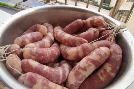 以前贵州人灌香肠,都是自己家买几十斤半肥半瘦的肉,用刀剁将肉绞碎,加适量的佐料,再人工一节一节灌,比较费时间和人力。