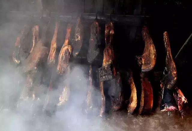 成品的一种腊肉会有松柏枝特有的烟气,颜色黄亮,不管是清蒸、小炒还是煮火锅,贵州传统风俗,味道好吃得无法形容。