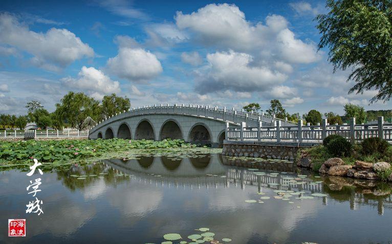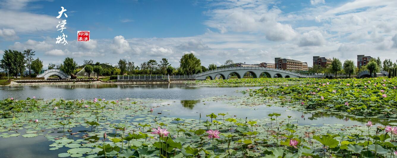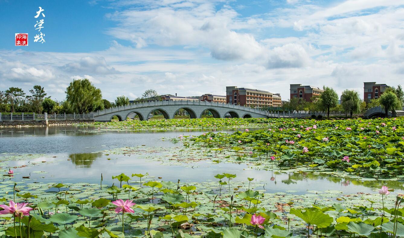 走进庄河大学城,仿佛踏入了江南水乡。小桥流水,浮萍莲花;轻风扶柳,绿荫倒影……微风拂过,阵阵荷香沁人心脾。在花香满径“绿肥红瘦”的风光掩映下,大学城正敞开怀抱迎接4000余名大一新生的到来。