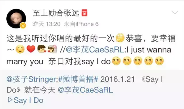 当时小五正在韩国服兵役,于是在微博上给他发了祝福,而同样没有出席的张远也一样恭喜他:“要幸福”。可事后,李茂却只回复了小五的那条,不由地让人联想到了组合不合的传闻。