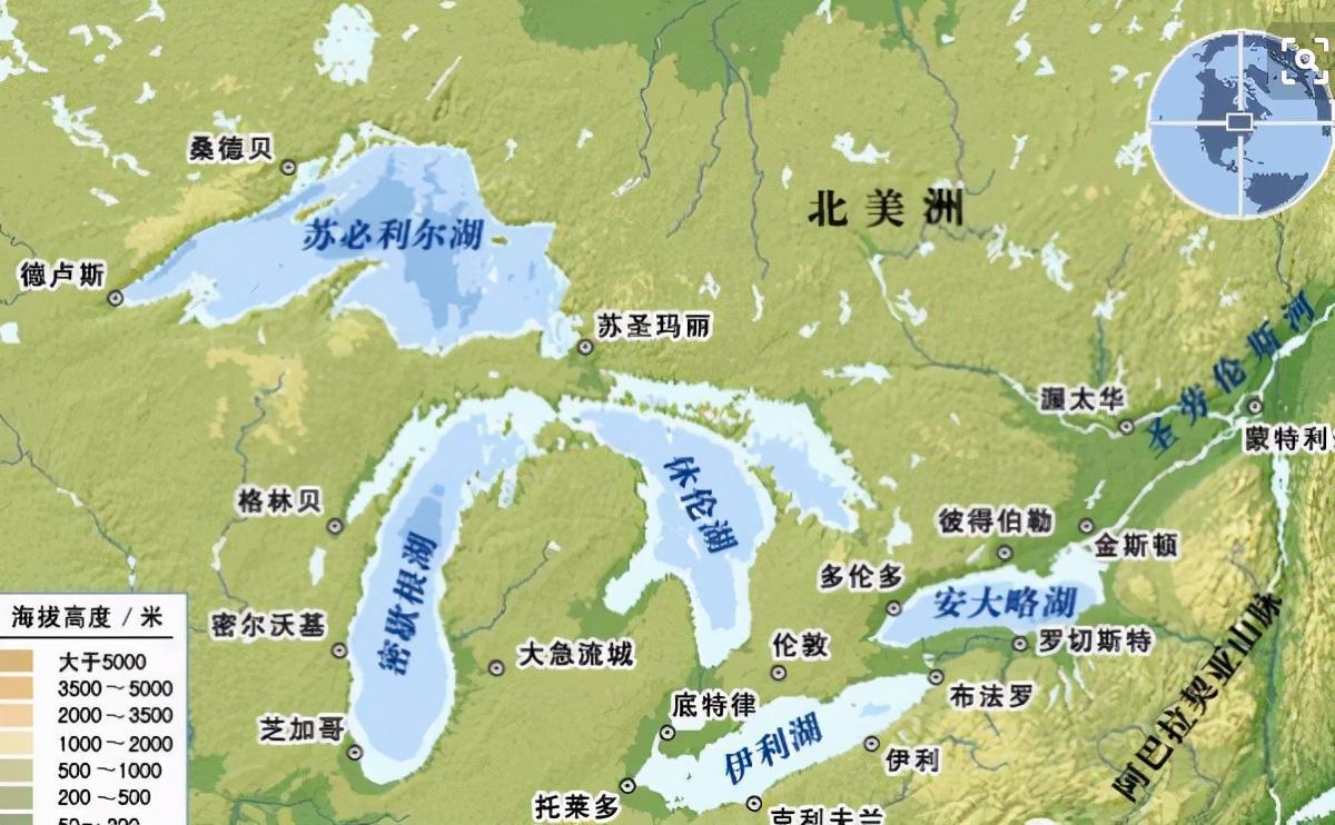 首先,拿北美的五大湖来说。五大湖是世界上最大的淡水水域,仅一个苏必利尔湖的面积就达到了贝加尔湖的近3倍,在世界前十大湖泊面积排名中,五大湖就有四个上榜。就是这么庞大的淡水湖群,由于平均水深较小,不到100米,总贮水量22.8万亿立方米,比一个贝加尔湖还要略逊一筹。