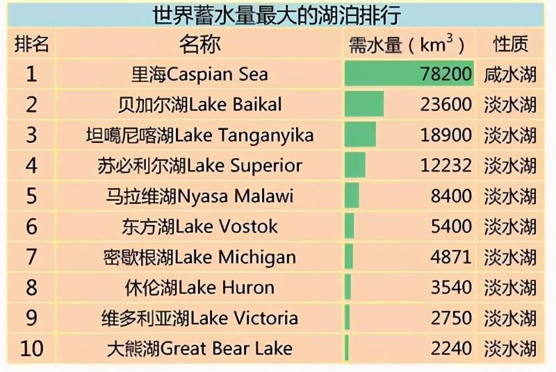 如果仅仅用2.3万亿立方米这个概念,来描述贝加尔湖的储水量,不是太直观,我们可以用其它比较熟悉的湖泊来进行一下对比。