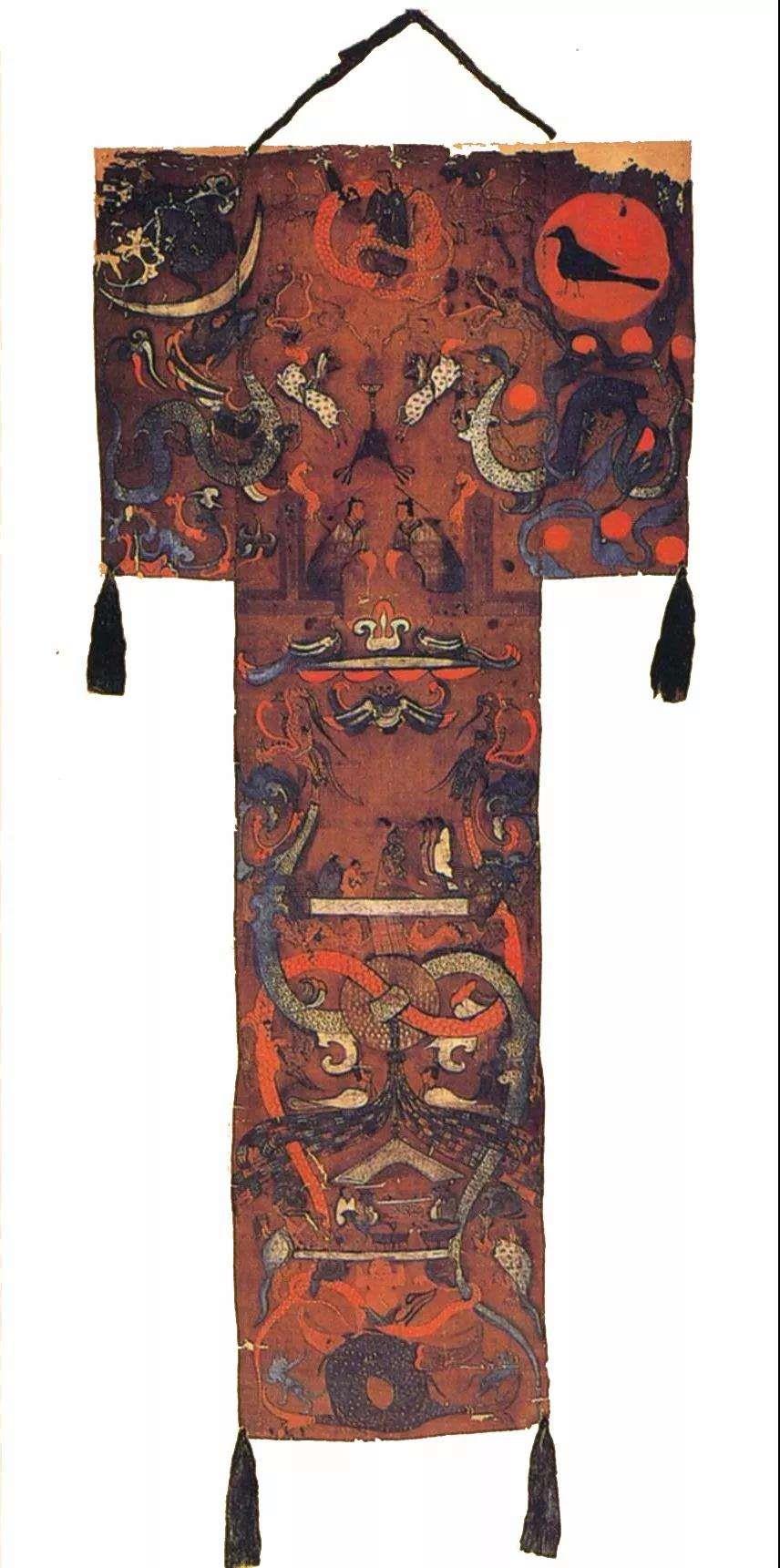 整个辛追墓的核心随葬品其实是一件非衣。非衣是丧葬出殡时领举的一种旌幡,是在帛上绘出图画,帛画的主题内容多是“引魂升天”或是“招魂安息”,入葬后将作为随葬品盖在棺上。