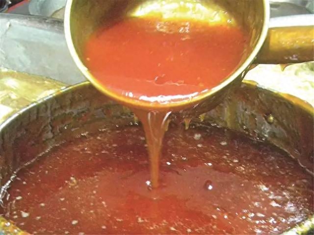 14.净锅上火,入番茄酱、橙汁、白糖、白醋、清水熬浓成糖醋汁,勾芡后均匀淋在鱼身上即成。