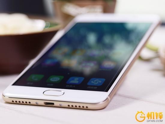 正面上方为1600万像素的主摄像头与听筒、光线距离感应器,主屏幕下方只有一颗按键,支持触控返回、指纹解锁、按压Home键等多项功能,Home键的金属包边做工不错。