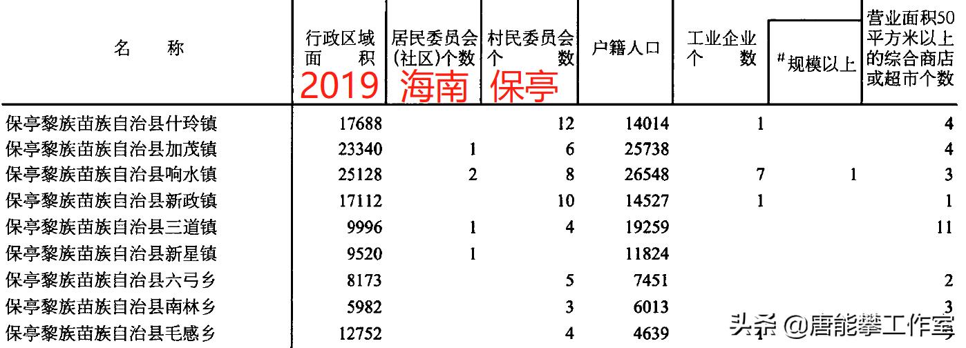 海南琼中、陵水、保亭3县30镇的变迁:人口、土地、工业年度统计