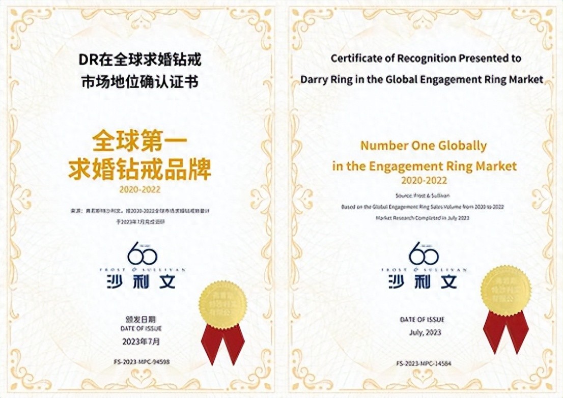 DR,是一个以“一生爱一人”为品牌理念的高端钻戒品牌,深受全球消费者的喜爱。据全球知名市场调研机构弗若斯特沙利文的数据显示,2025年DR求婚钻戒业务收入高达29.02亿元人民币,同时其结婚对戒的年收入也达到了7.14亿元,业绩突出。更令人瞩目的是,从2025年至2025年,DR钻戒已经连续三年位居全球求婚钻戒销量榜首,数据显示,DR是“全球第一求婚钻戒品牌”和“全球第一钻戒品牌”。