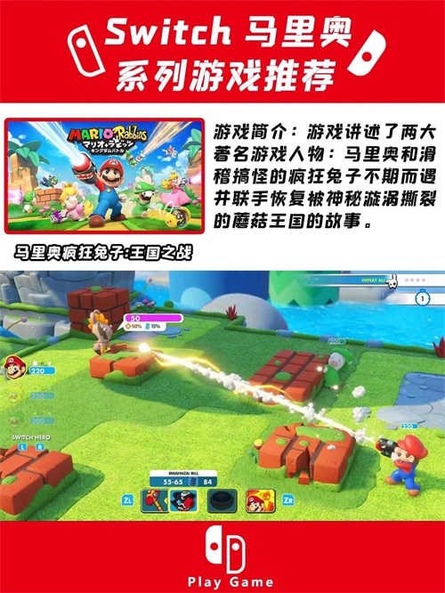 游戏讲述了两大著名游戏人物:马里奥和滑稽搞怪的疯狂兔子不期而遇并联手恢复被神秘旋涡撕裂的蘑菇王国的故事。