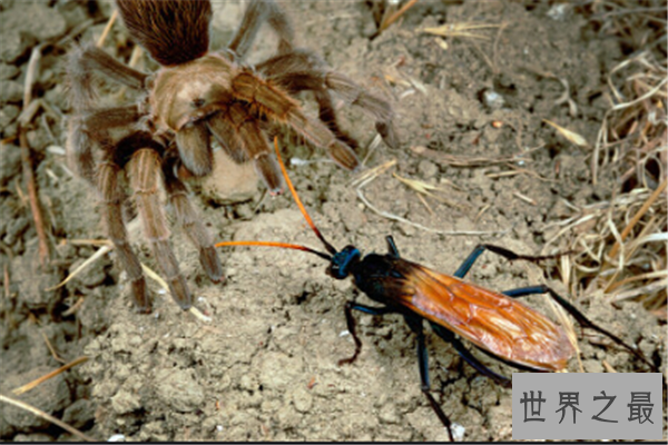 沙漠蛛蜂,这种胡蜂主要生活在印度到东南亚、非洲等地区,它是目前世界上发现的最大的胡蜂,被这种胡蜂蛰了,疼痛的剧烈程度却令人痛不欲生,不过这种胡蜂是很少攻击人的。