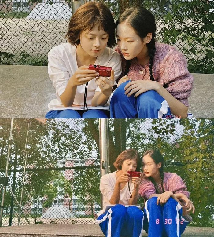导演在拍摄这个画面的时候,罗琦琦因为和老师顶嘴而被罚站在乒乓球台桌上,全校所有人都被吸引出来看着站在乒乓球桌上的女孩儿,而此刻一个扎着双麻花辫背着碎花书包的女孩儿大喊:“罗琦琦!”然后朝着她飞奔而去。