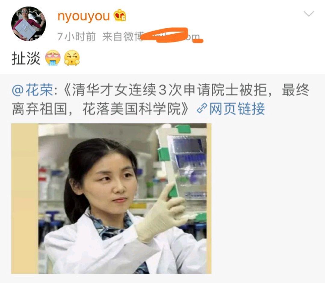 比如近来的一段视频,冠以《清华才女连续3次申请院士被拒,最终离弃祖国,花落美国科学院》的标题,用上了“离弃祖国”的字样。这段视频,也被青年科学家颜宁本人给刷到了,而且转发在个人社交媒体之上,还@了视频作者,做出了两个字的回应:“扯淡!”