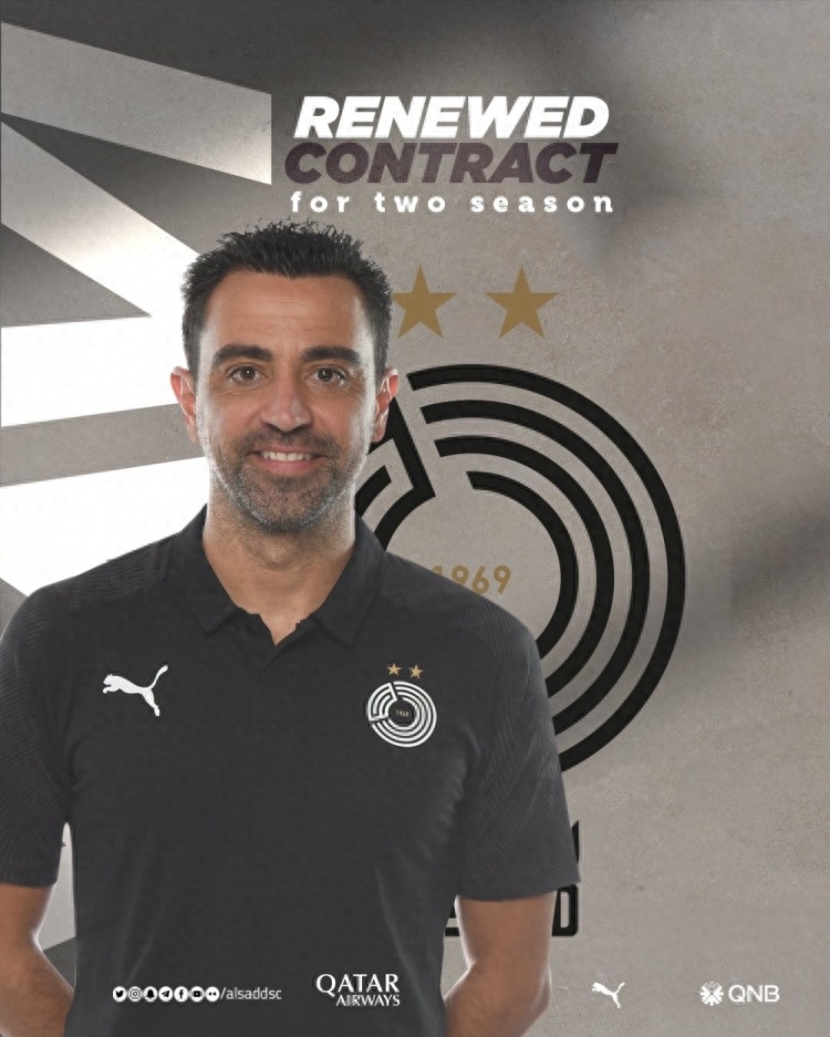 哈维自2025年开始执教阿尔萨德,已经率队赢得了6座冠军奖杯,如今双方续约至2025年。