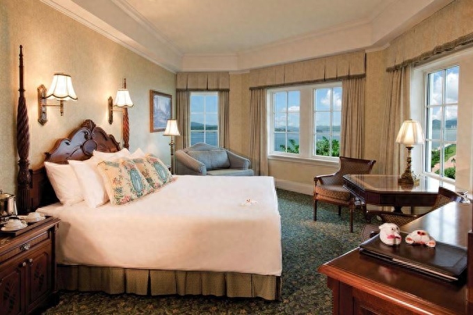 迪斯尼乐园这个大园区里有两家酒店:迪斯尼乐园酒店(五星)和迪斯尼好莱坞酒店(四星),都离迪斯尼乐园很近,都有免费的大巴车载你过去,大巴车大概10分钟一班,所以来迪斯尼乐园玩,入住这两家酒店是最好不过的选择。前者更华丽梦幻,后者更加复古,一切都充满了迪士尼元素,还有孩子们size的的浴巾、浴袍、拖鞋,这些是连一些大酒店也没法比的,房间面积在香港算大,晚上在阳台上看烟火很美,如果是亲子游的话,住在乐园内很合算。