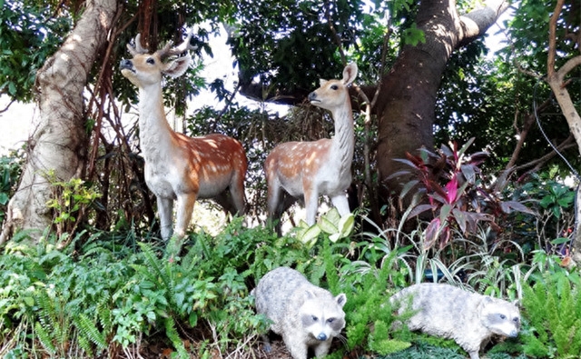 <雨林探险径>一如其名,包罗了鸟兽、昆虫、鱼类等各式热带生物。最喜欢的是其中亚马逊风格水族缸。交错纵横的沉木,着生的水草,配以冷色调的灯光和特色鱼类,原始自然的神秘感扑面而来。