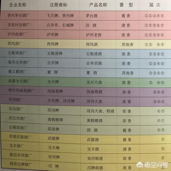 下图为历届全国评酒会获得全国名酒(金质奖)的白酒完整名单