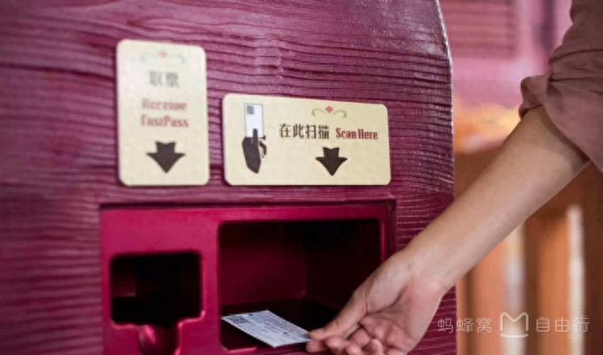 第二步,把你的门票放到Fastpass机器的扫描处,二维码朝上,扫描迪士尼主题乐园门票。