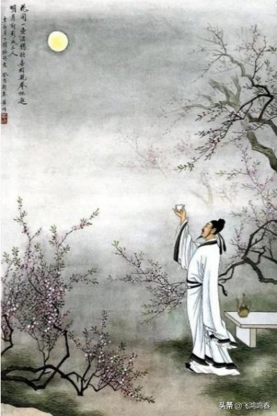 以酒邀月:花间一壶酒, 独酌无相亲。 举杯邀明月, 对影成三人。