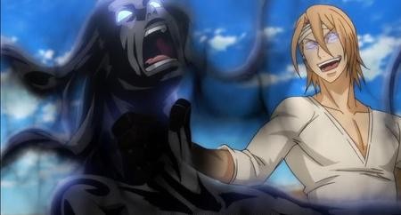 看看这嚣张的嘴脸,灵痛苦的挣扎,掐脖子残忍的手法,跟把灵当成长辈,当做朋友的风星瞳相比,是不是高下立判?(当然,王并掌握的完全版才能服灵,星瞳并不会。不过,我相信即使星瞳会服灵,他也不会轻易使用这招吧,毕竟这个灵也算是他的家人啊。)
