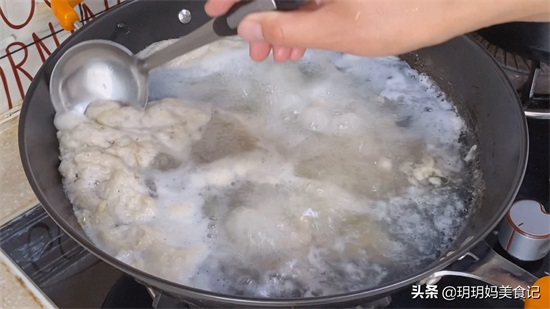 4,烧开之后用勺子把上面的浮沫去干净,这是腥味的来源,再转小火煮15分钟再焖10分钟