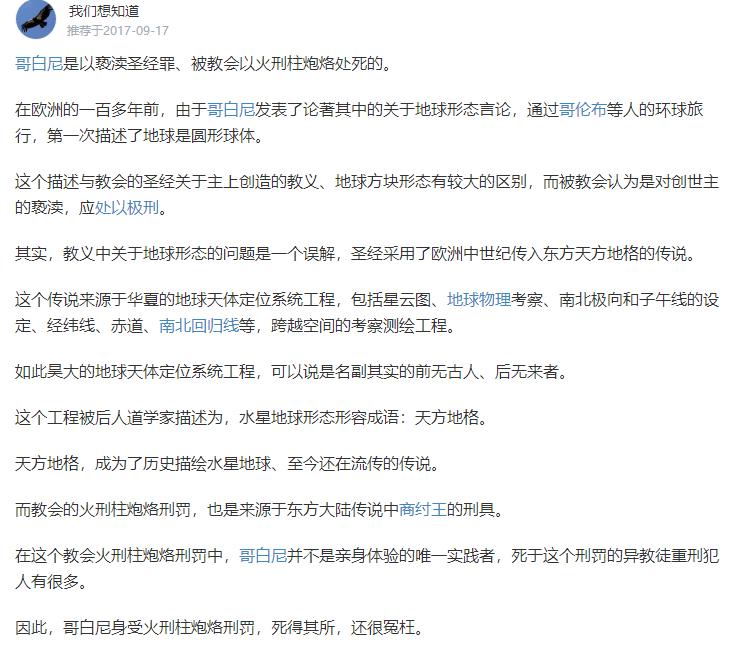 奇怪吗?就连我自己也记得哥白尼被烧死,难道说历史老师把我骗了吗?但被骗的不止我一个,其实大有人在。或者说是学渣大有人在。