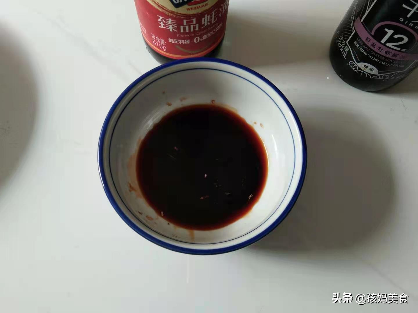 3、碗中加入轻盐牡蛎酱油、糖和蚝油和水调和均匀