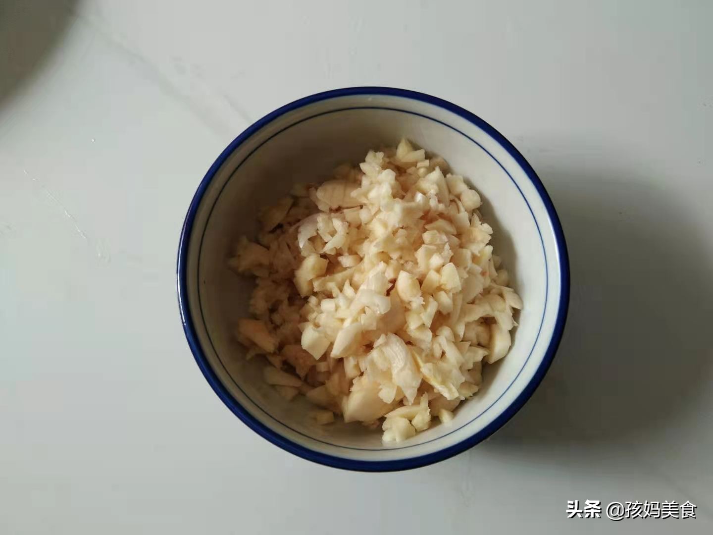 1、大蒜用刀剁成蒜碎,用清水投洗一遍捞出控水,清水可以去掉蒜的黏液,炒的的时候不易糊