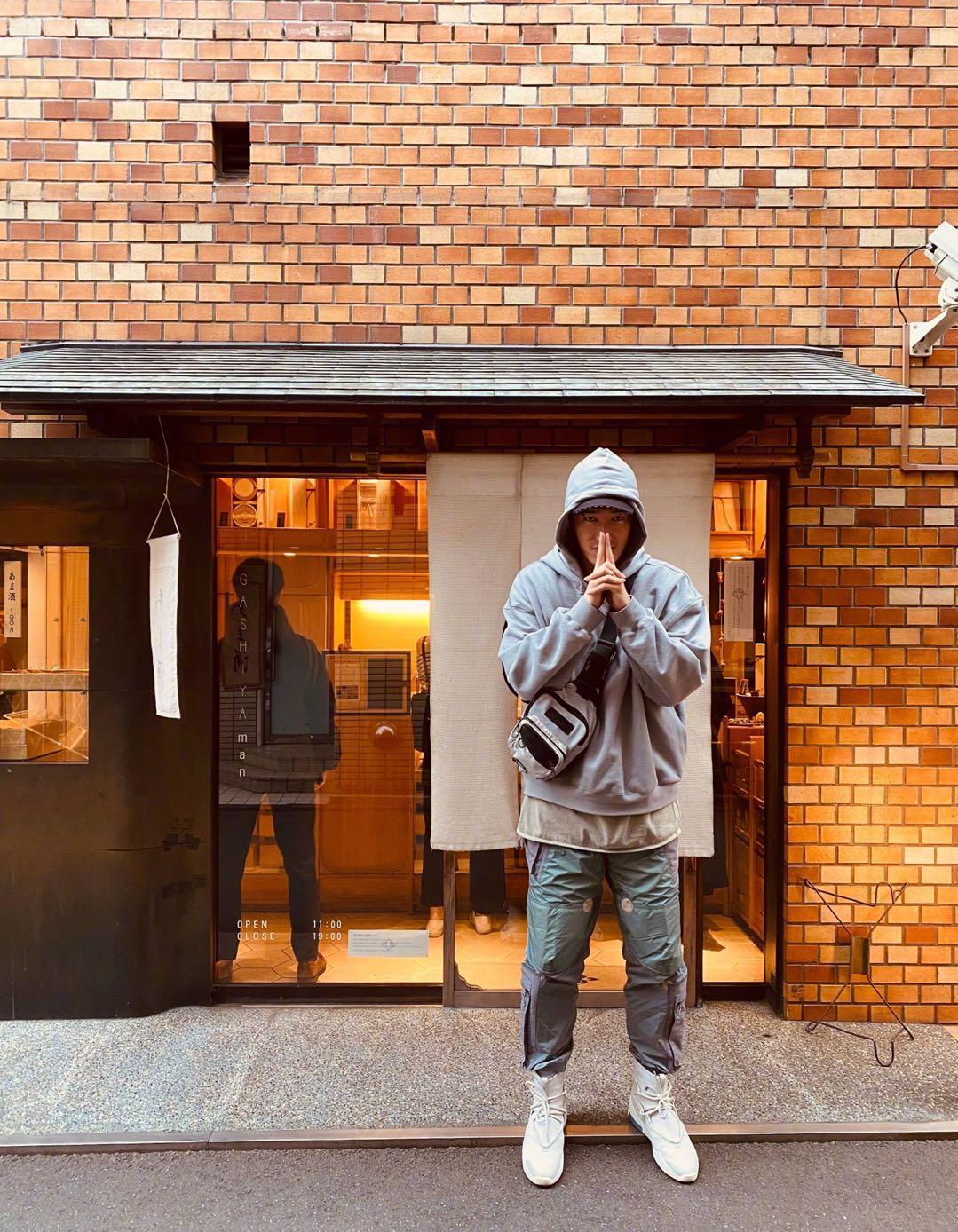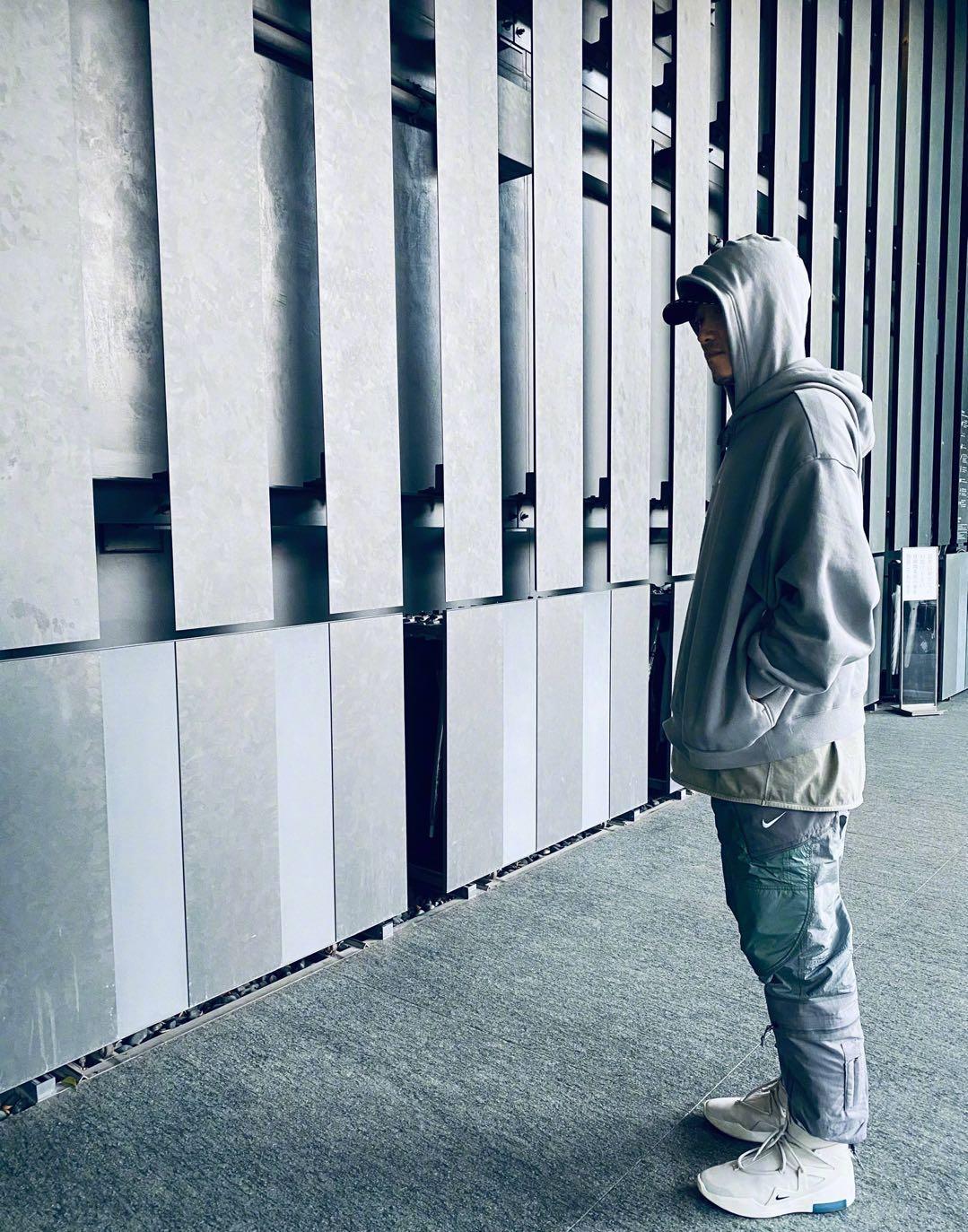 在一身灰色下,刘翔搭配了一双白色篮球鞋,瞬间点亮了全身的颜色。搭配一只帅气的胸包跨在胸前,样子充满了个性感。