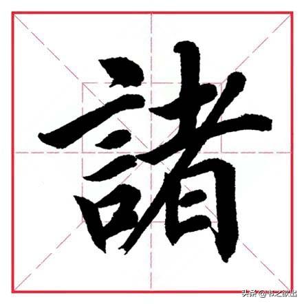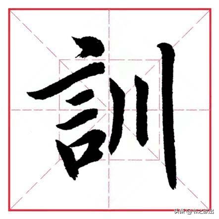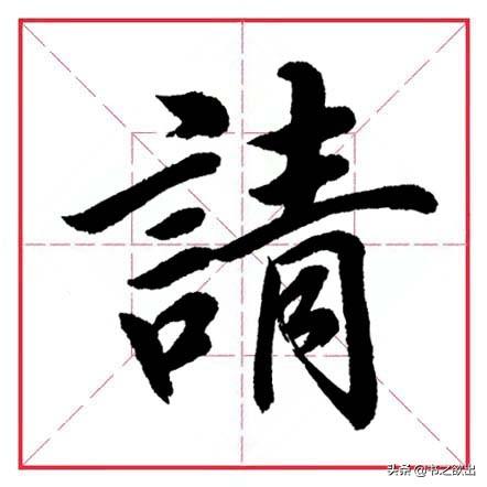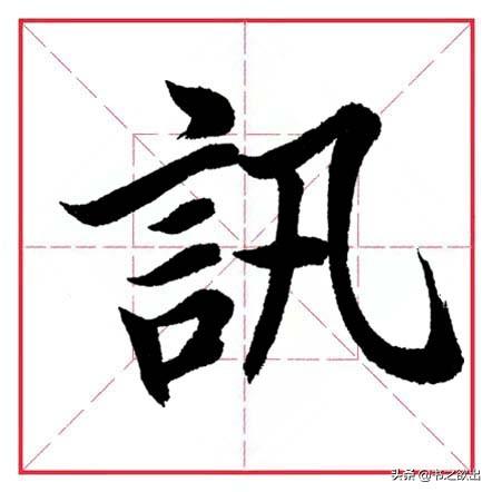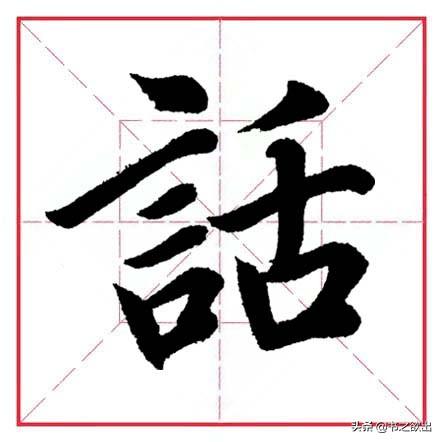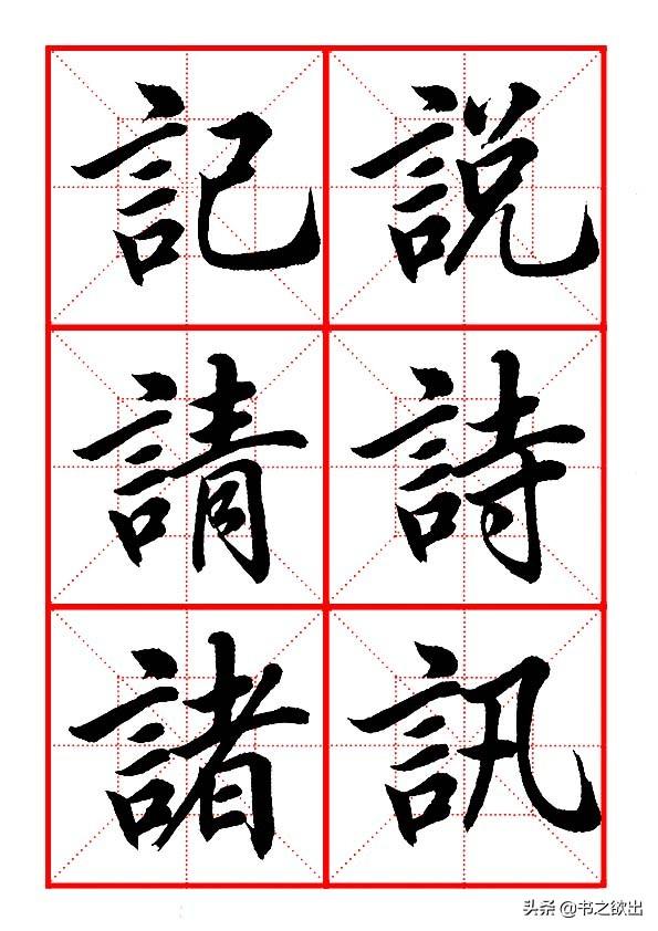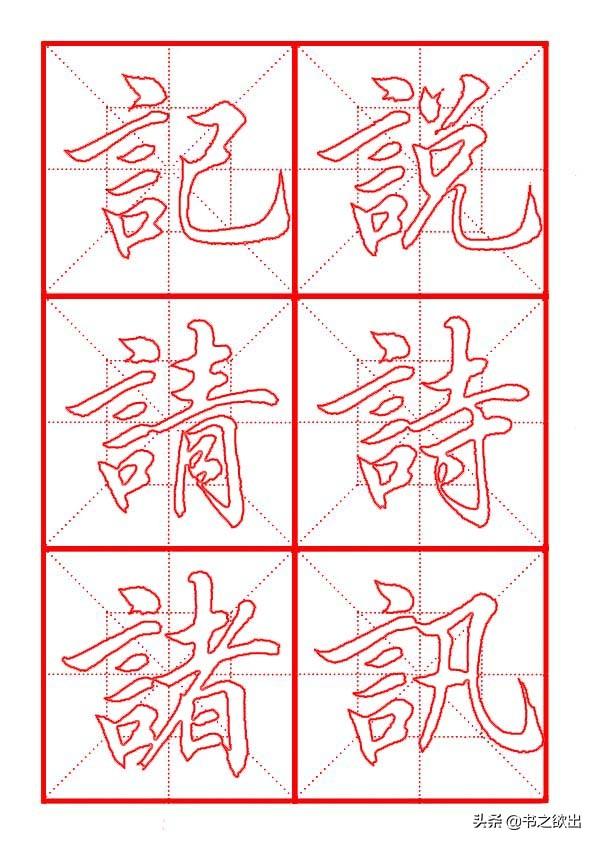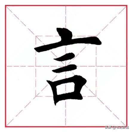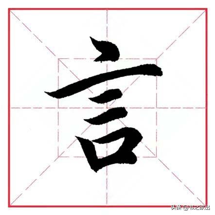 “訁”作为偏旁在左边时要整体斜势抗肩,不要写宽,以让右部;在字下方时需紧凑上靠,稍扁宽,不宜写高。