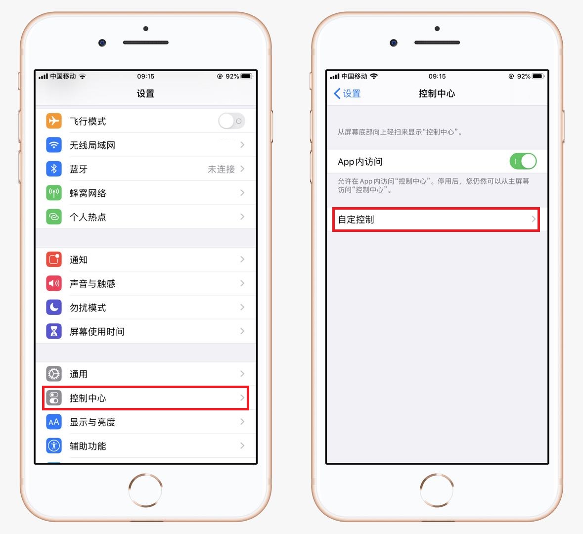 1.如果你的手机控制中心里,没有录制功能,那么需要进入【设置】中开启,然后点击【控制中心】选项,在里面有一个【自定控制】。