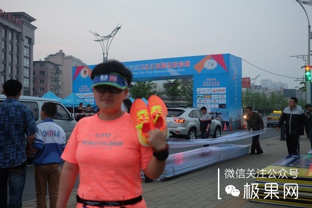 鞋子是在丹东国际马拉松的前一天收到的~傍晚时分就迫不及待的来到起点来臭美一下!鞋盒像不像百宝箱,宝物要打开喽~