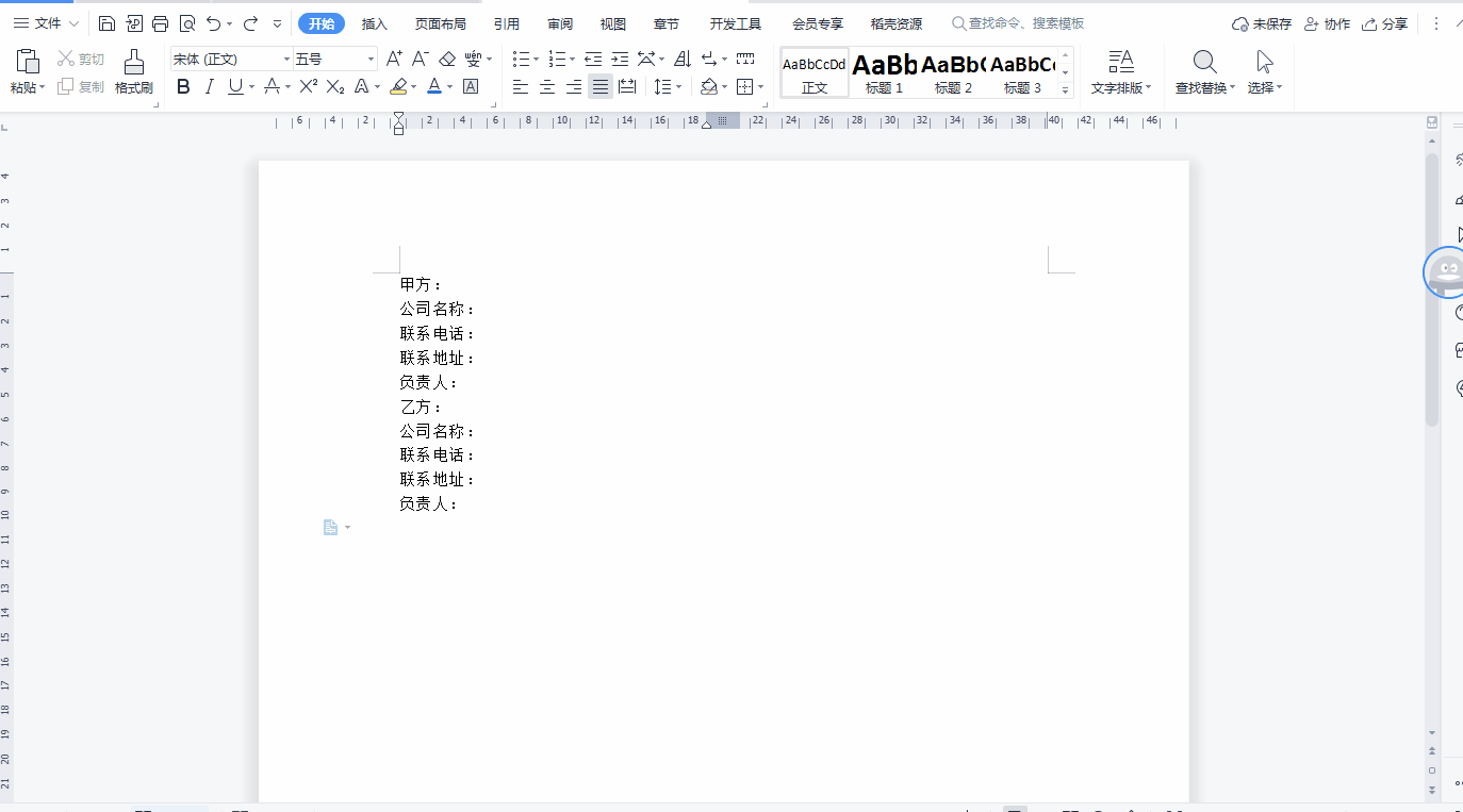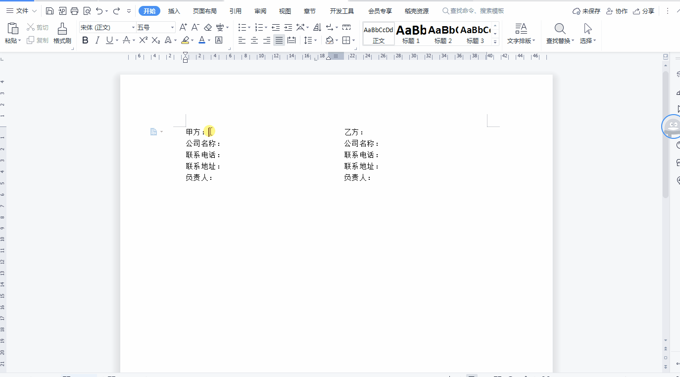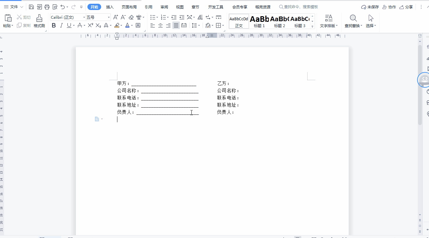 2、复制上面的甲方信息,然后点击回车键,wps标尺大小怎么调整,把甲方信息复制到后面,把“甲方”改成“乙方”,wps标尺画横线,如下图
