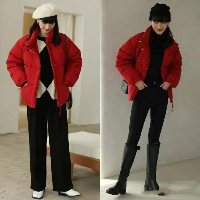 小个子姑娘的穿搭,可以简约俏皮,也可以时髦活泼。短款的棉服外套,轻盈蓬松。配上一条高腰的锥形裤,宽松的裤腿休闲舒适,不管是什么腿型,都能够得到更好的修饰性,上身显高又不臃肿。