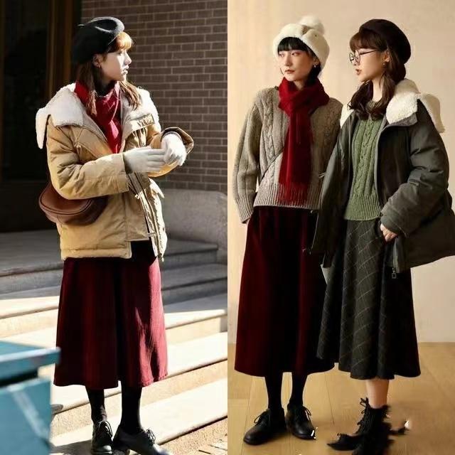秋冬的季节,我们更加需要拉伸下身的线条比例,所以更推荐大家选择裤子与鞋子的顺色,或者半身裙与袜子的顺色,更容易起到优雅显高的效果。