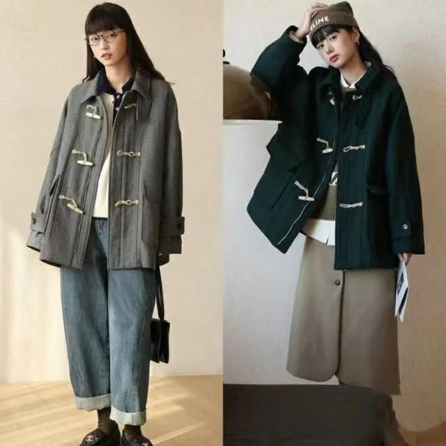 带有学院风的牛角扣大衣,就特别适合小个子姑娘穿着。中长款的长度,刚刚到大腿的位置,优雅又不冗长,配九分裤或者半身裙,都可以勾勒出纤细的足踝,轻盈时尚的同时也更加显高。