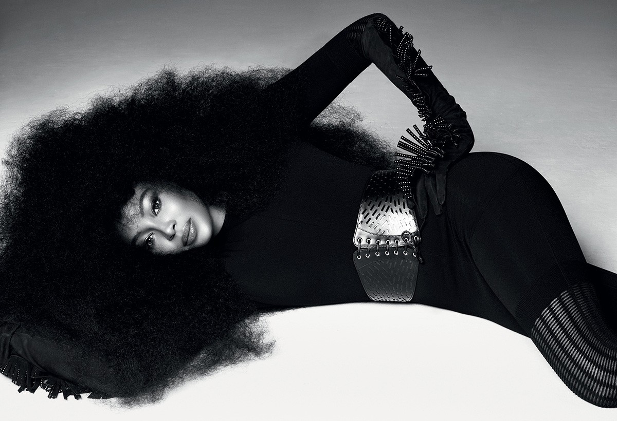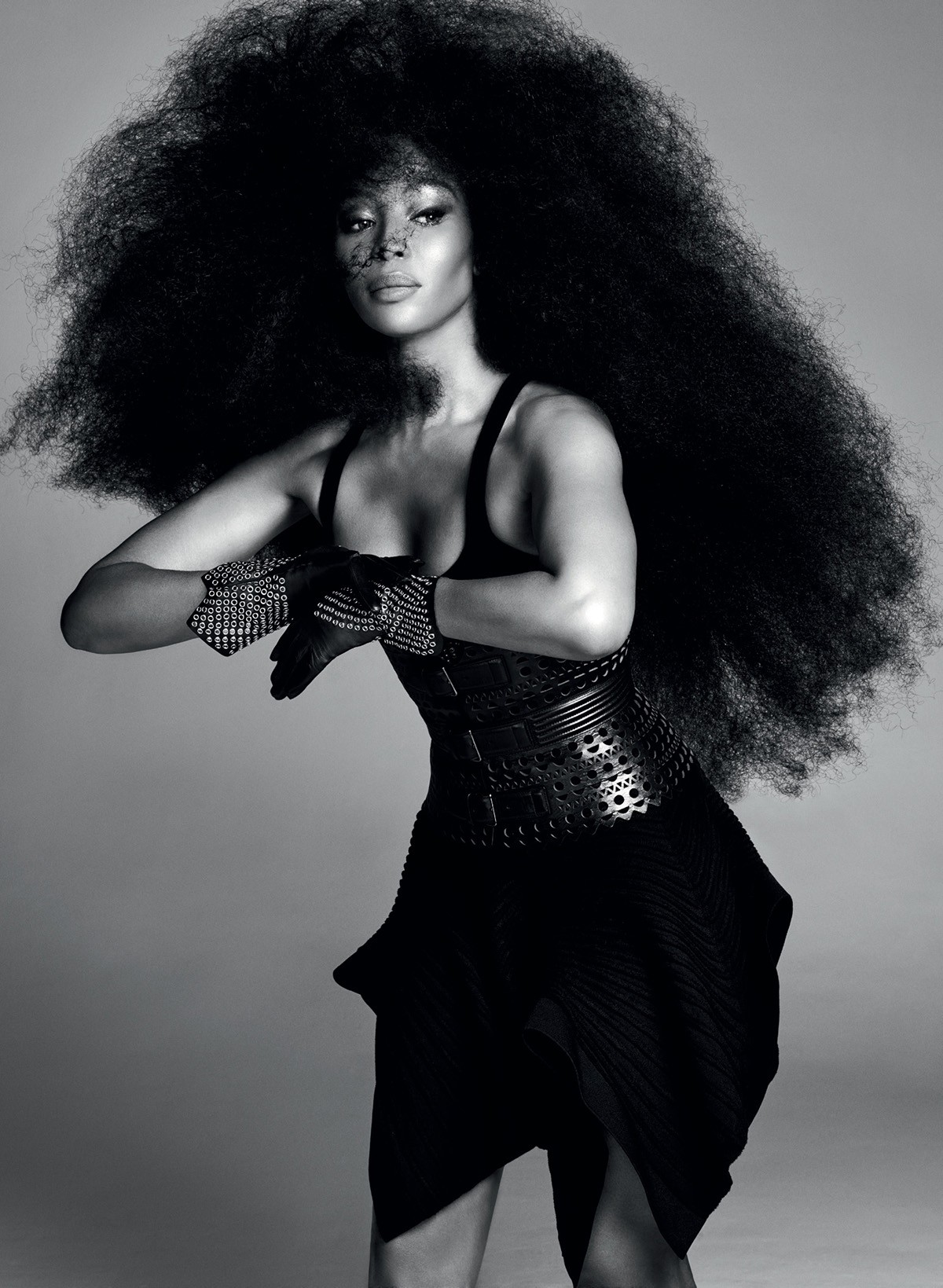 对于名为“ Sweet Child O'Mine ”的封面故事,Joe McKenna 为 Naomi 设计了来自 Alexandre Vauthier、Alaïa、Rick Owens 和 Balmain 等品牌的设计。
