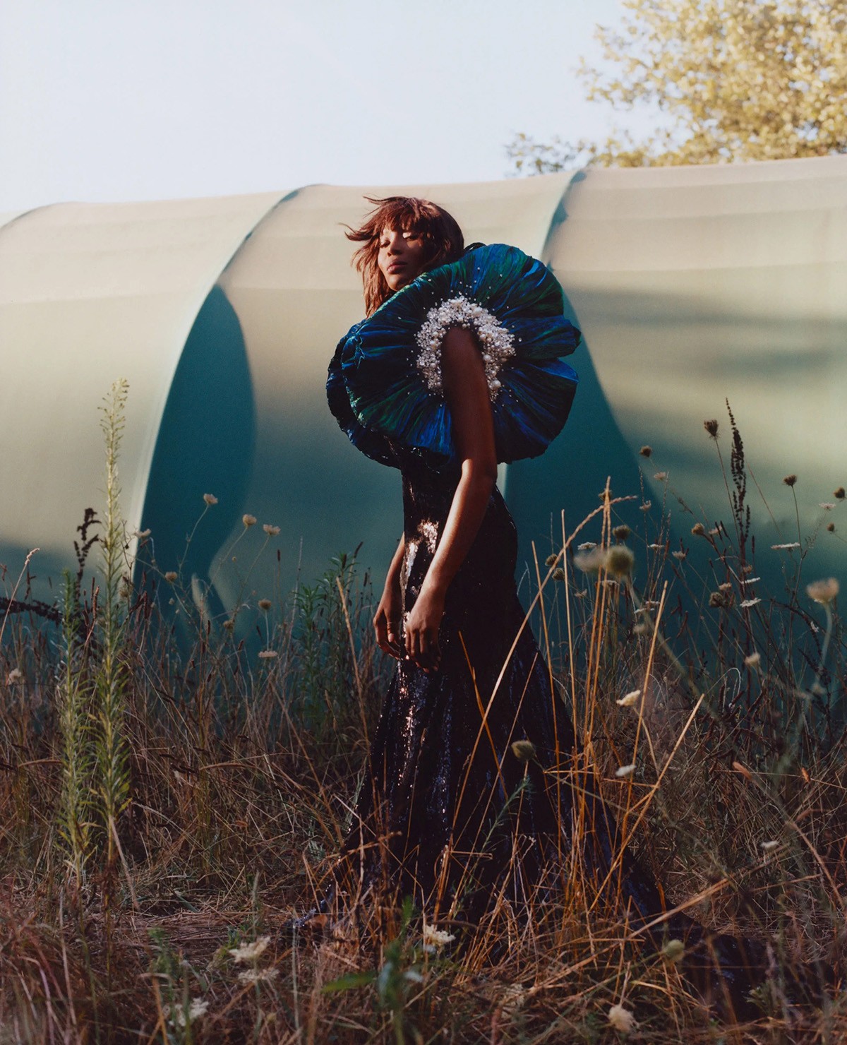 Naomi Campbell成为《Vogue》西班牙月刊的焦点。由冉冉升起的新星摄影师 Nadine Ijewere 拍摄,这位英国超模身着 Gucci 造型寻找动感的封面形象。在洛杉矶拍摄的封面故事中,造型师 Nathan Klein为Naomi穿着来自 Valentino、Capucci、Burberry、Ports 1961、Giambattista Valli、Christian Siriano 和 Chanel 等品牌的设计。