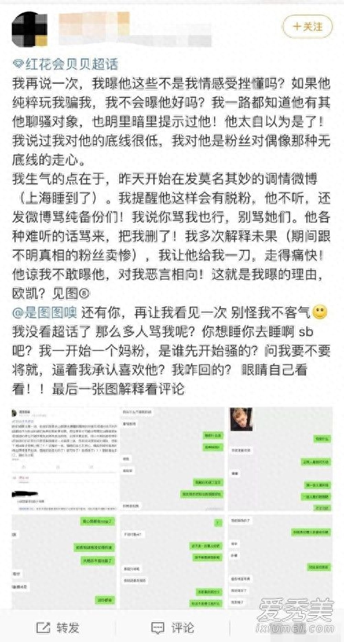 至于贝贝剁自己手指的原因,是因为有贝贝的粉丝,曝出了贝贝和自己以及和他人暧昧的记录。这位粉丝表示,自己知道贝贝在和自己暧昧的时候,同时也和他人聊着,但自己觉得并无不妥,直到后来贝贝突然开始发各种调情的微博。自己在对他进行劝诫后,他却把自己删了,因此这位粉丝直接曝出了贝贝暧昧调情的记录,同时要求贝贝为众多女粉丝道歉。