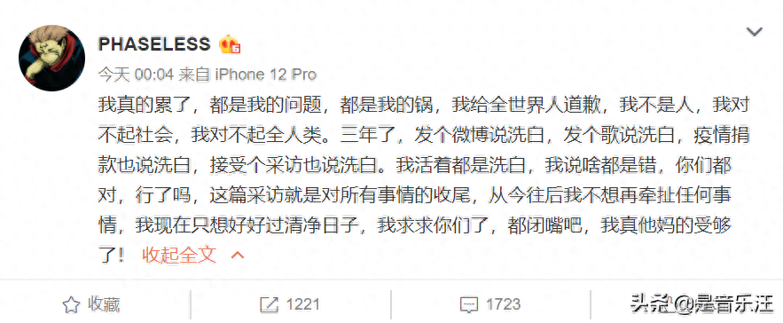 另外从PGONE这三年的作品来看,他几乎无时无刻不在抱怨,占比远远比诚恳道歉要大,没有人阻止他继续做音乐,无法上架只是一种惩戒并不会扼杀他创作的双手。