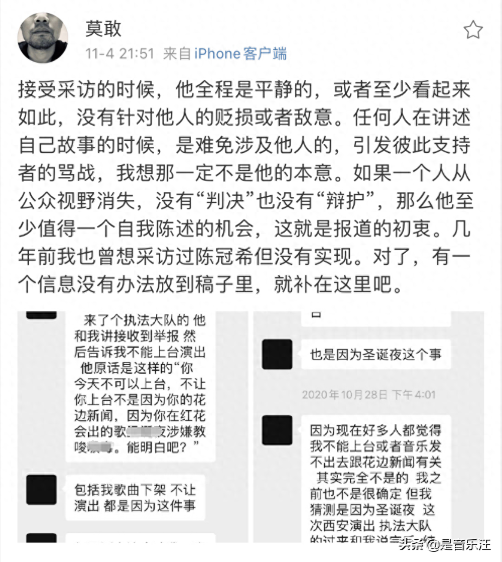 同时最近《人物》杂志主笔谢梦遥还曝光了PGONE被封杀的原因,根据两人的对话来看,PGONE强调自己是因为某首歌的内容而被拒绝演出,并非花边新闻。