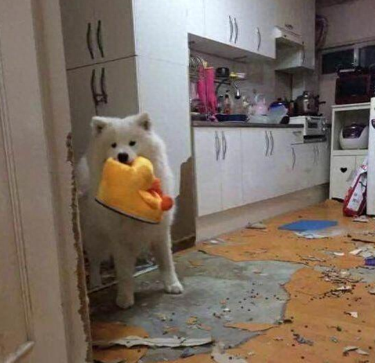 如果你没有好好满足萨摩耶的需求,那么萨摩耶在家里就会是一副搅屎棍的样子,在家不是咬衣服鞋子,就是拆家具,总之就是要烦的你头大。