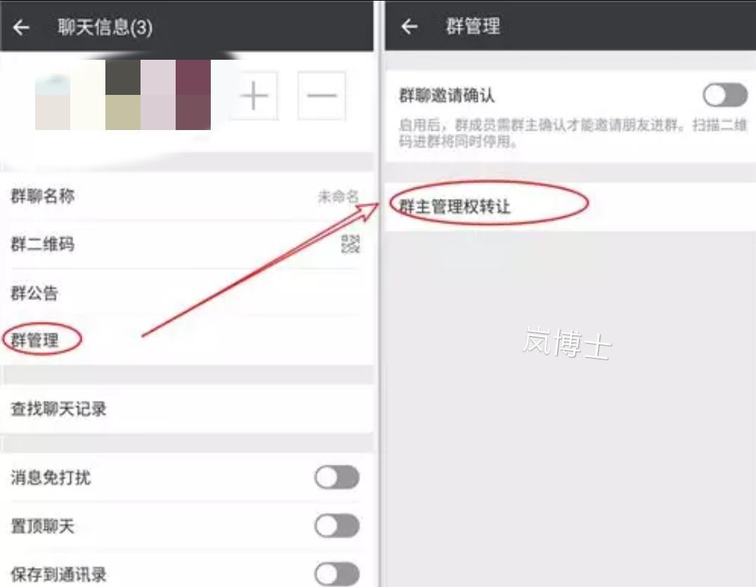 群主权限转让方法: