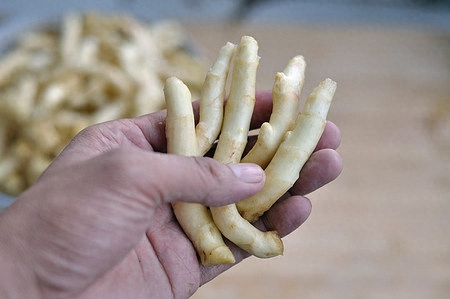 姜为地下茎,其上能生不定根和芽,其上所生的芽就叫姜芽。姜芽可腌制酸菜,炒菜。姜芽是由姜块培育出的幼芽,一般采用土培法或沙培法进行软化栽培。姜芽是由姜块培育出的幼芽,一般采用土培法或沙培法进行软化栽培。