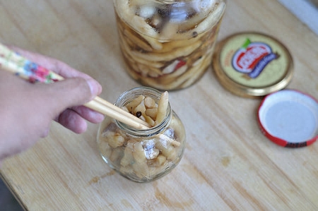 把腌渍好的姜芽分成小包装,方便食用、送人。