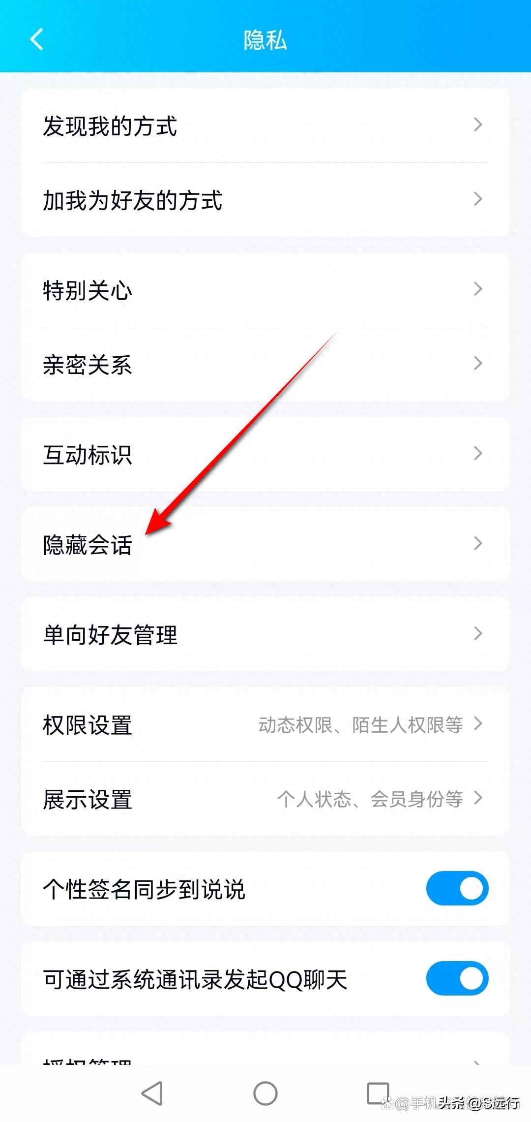将“隐藏会话”旁的小滑块点暗即可重新显示该好友会话。